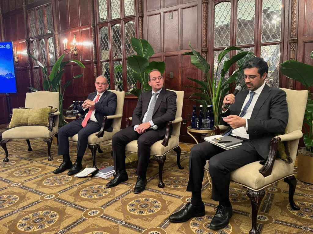 شارك الدكتور محمد فريد، رئيس الهيئة العامة للرقابة المالية، في حوارات مفتوحة نظمها بنكا ستاندرد تشارترد وسيتي بنك مع مجموعة من كبار المستثمرين الدوليين ومديري الأصول وممثلي مؤسسات التمويل العالمية، وذلك على هامش اجتماعات صندوق النقد والبنك الدوليين بالعاصمة الأمريكية واشنطن، وذلك لاستعراض تطورات السياسات التنظيمية والرقابية خاصة في ظل تنفيذ مصر برنامج شامل لإصلاح الاقتصاد على المستوى المالي والنقدي والهيكلي وكذلك القطاع المالي غير المصرفي.